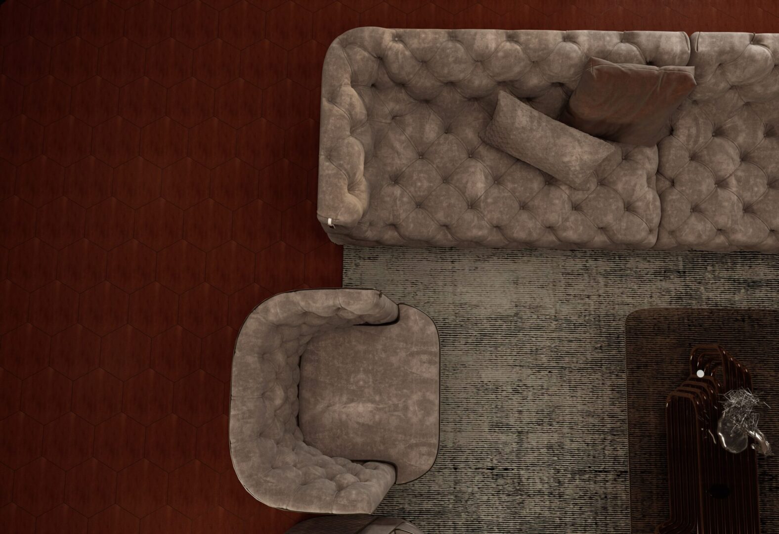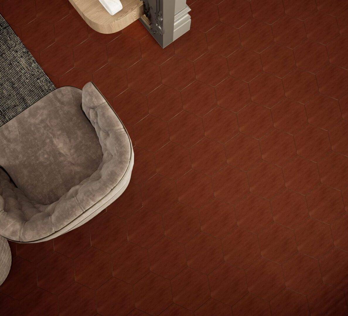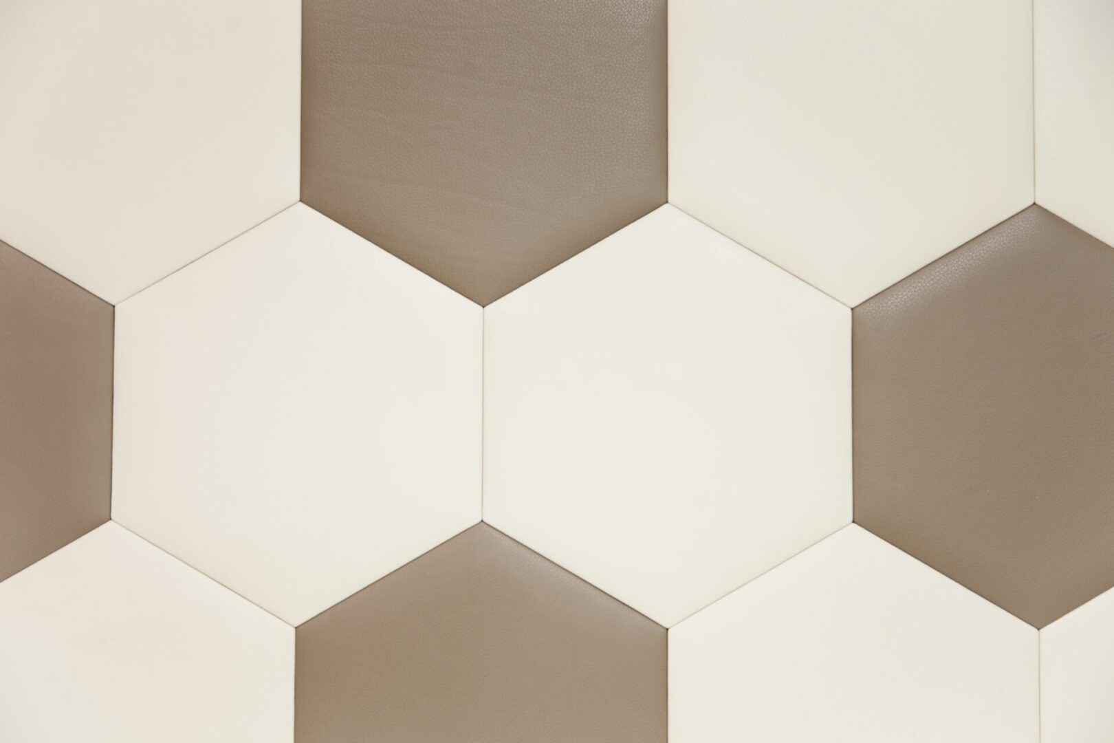 Hexara tiles, with their bold hexagonal design, bring contemporary flair to any space. The rich leather textures and diverse colour options make them a versatile choice for modern interiors, adding depth and visual interest to floors.