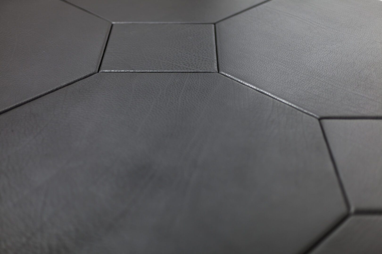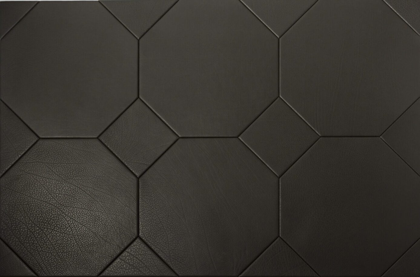 OCTALUX tiles, featuring a distinctive octagonal shape, create an eye-catching pattern that enhances floors with depth and character. Their luxurious leather finish is available in various colours and textures, offering adaptability to suit any interior aesthetic.