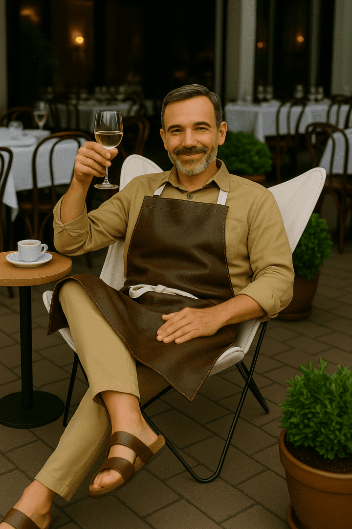 Our leather apron is made from premium full grain leather, offering long-lasting durability and a comfortable fit for all-day wear. Designed for chefs, home cooks, baristas and artisans, it features adjustable straps for a secure fit and a spacious front pocket to keep tools and utensils within easy reach. The natural leather ages beautifully, gaining character with each use. Ideal for both professional and home environments, it blends practical function with a refined, modern look.