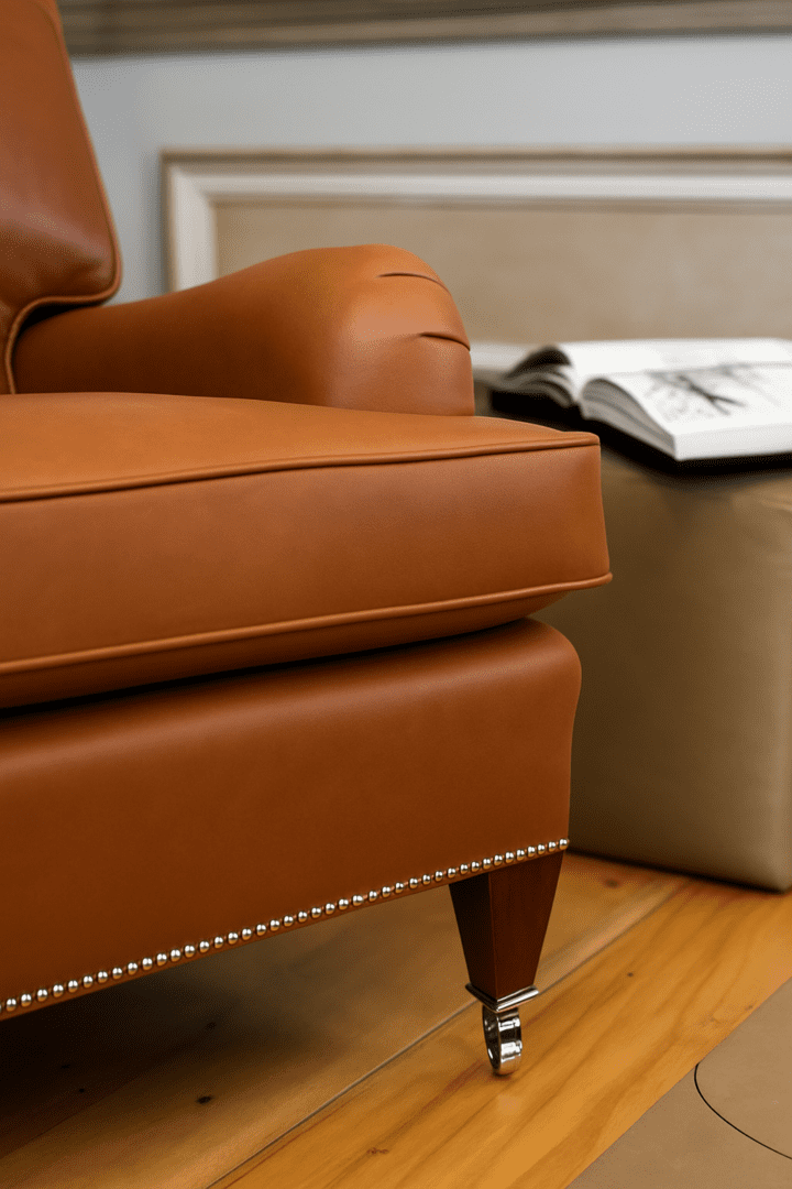 The Chelsea Chair in your collection blends two complementary leather tones in a nod to its historical lineage. With gently arched arms, subtle piping, and warm wooden legs, it feels inviting and grounded. This chair is ideal by the fireside or as a refined statement in a study, bringing an air of tradition and comfortable luxury to any interior.