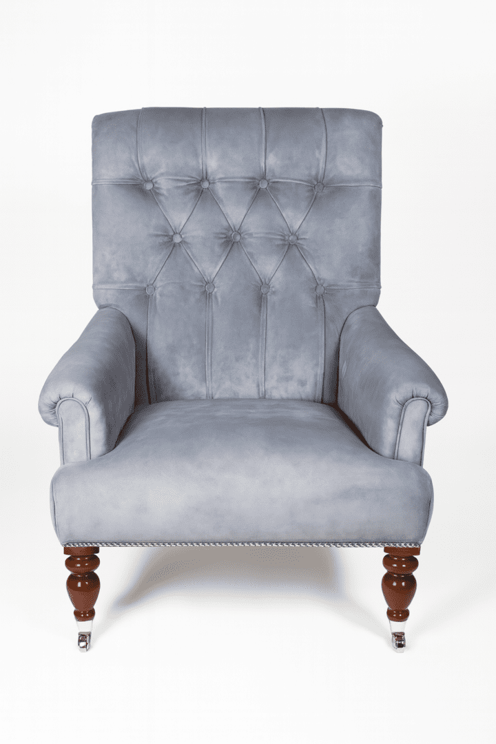 The West Bourne Chair combines gentle curves with the supple touch of grey calf suede, offering comfort that feels indulgent yet understated. Resting on sleek, high-gloss wooden legs, it’s a piece made for quiet moments, perfect for a lounge, reading corner or elegant living space.