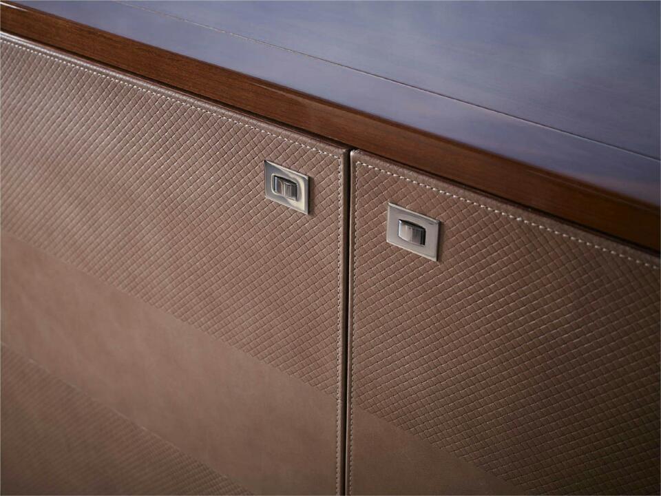One of the project’s highlights is the expertly handcrafted leather upholstery. Each piece of furniture was painstakingly covered in leather, which blended in perfectly with the wood finishes of the yacht. The seamless blend of materials shows how leather can go well with organic features, elevating the room’s overall refinement.